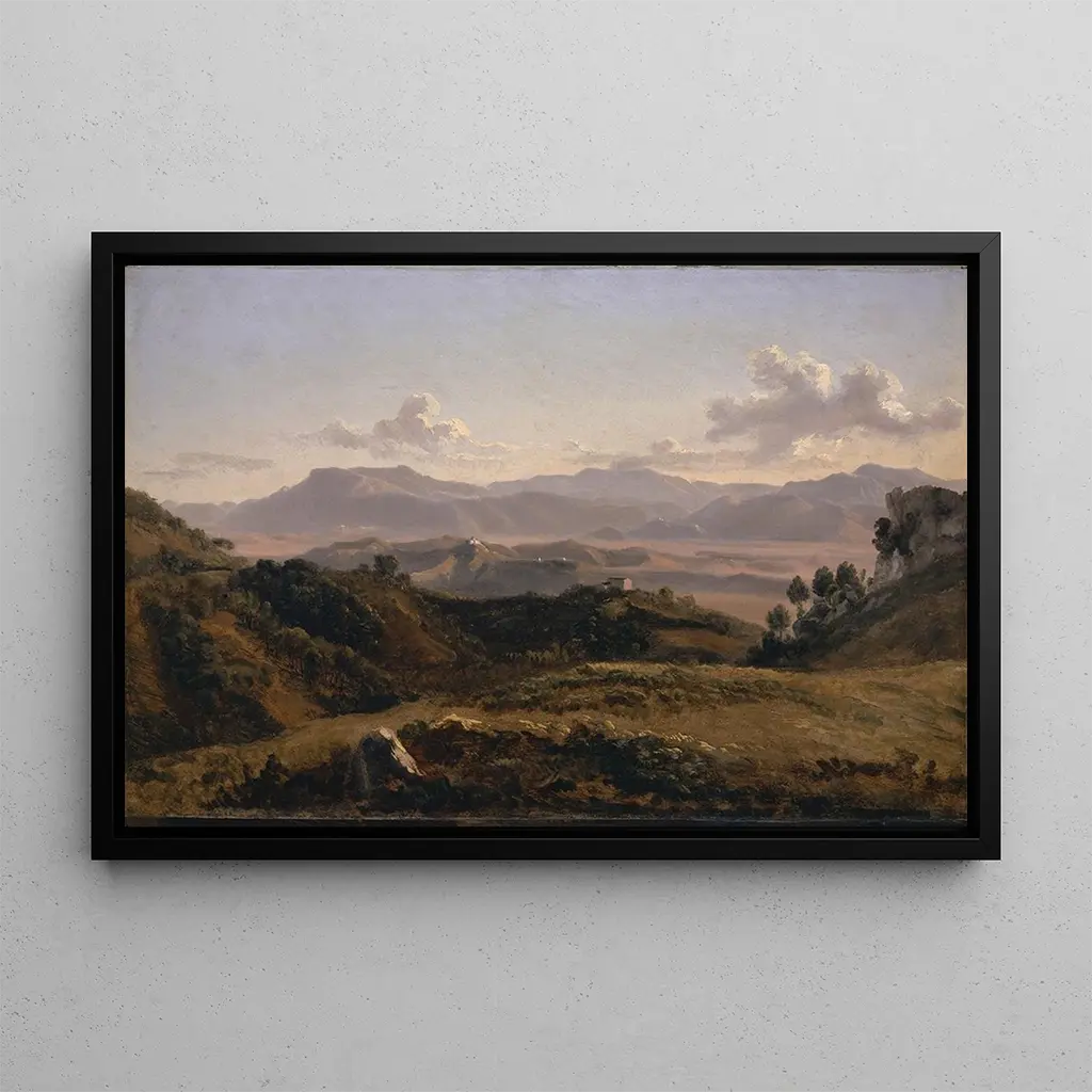 La impresión artística de Paysage près d'Olevano de Friedrich Salathé nos transporta al corazón de un paisaje bucólico, donde la naturaleza florece en toda su esplendor. Esta obra, bañada en luz, destaca colinas verdes y un cielo de un azul brillante, creando una atmósfera serena y tranquilizadora. Las tonalidades de verde y azul se mezclan armoniosamente, mientras que toques de color cálido acentúan la composición. Salathé logra capturar la belleza de los paisajes italianos con una delicadeza que invita a la contemplación y a la evasión.