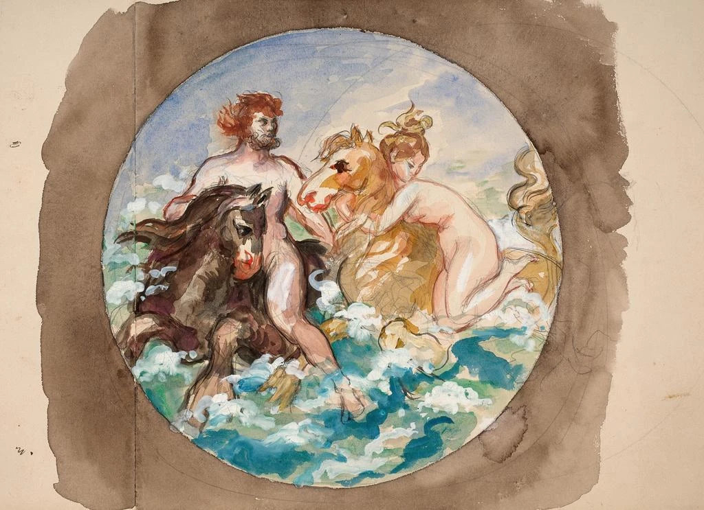 Pareja sobre caballitos de mar - Félix Bracquemond