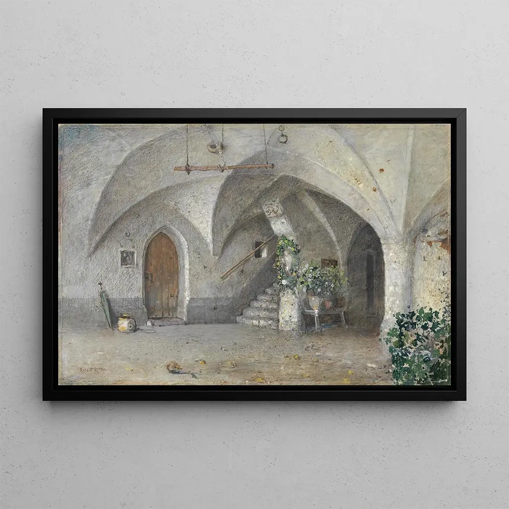 Robert Russ, pintor austríaco del siglo XIX, es conocido por sus representaciones de la vida cotidiana en los Alpes. Influenciado por el movimiento realista, supo capturar escenas auténticas y emotivas, destacando la belleza de los paisajes y los interiores montañeses. Su obra "Couloir chez le Kantioler à Klausen" ilustra perfectamente su estilo, combinando detalles minuciosos y una atmósfera cálida. Russ logró inmortalizar un modo de vida en vías de desaparición, ofreciendo así un valioso testimonio de la historia y las tradiciones alpinas.