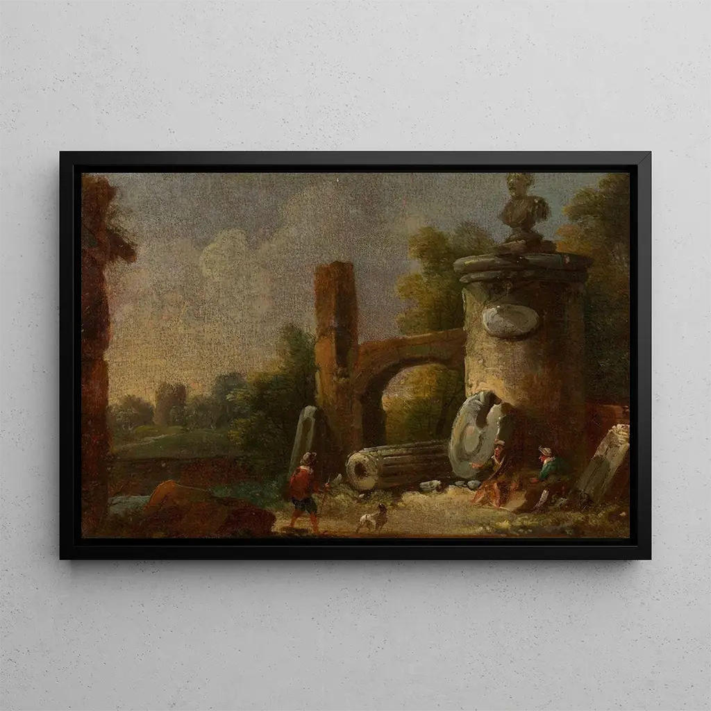 La reproduction de "Paysage de ruines fantastiques avec colonne commémorative" nous transporte dans un monde onirique où la nature et l'architecture se mêlent de manière saisissante. Les ruines, enveloppées de végétation luxuriante, évoquent une histoire ancienne, tandis que la colonne majestueuse se dresse comme un symbole de mémoire. Les couleurs vives et les contrastes saisissants utilisés par Franz Thomas Canton ajoutent une dimension presque magique à cette scène. Chaque détail, des ombres aux lumières, contribue à créer une atmosphère à la fois mélancolique et fascinante, invitant le spectateur à explorer les récits cachés derrière ces vestiges.