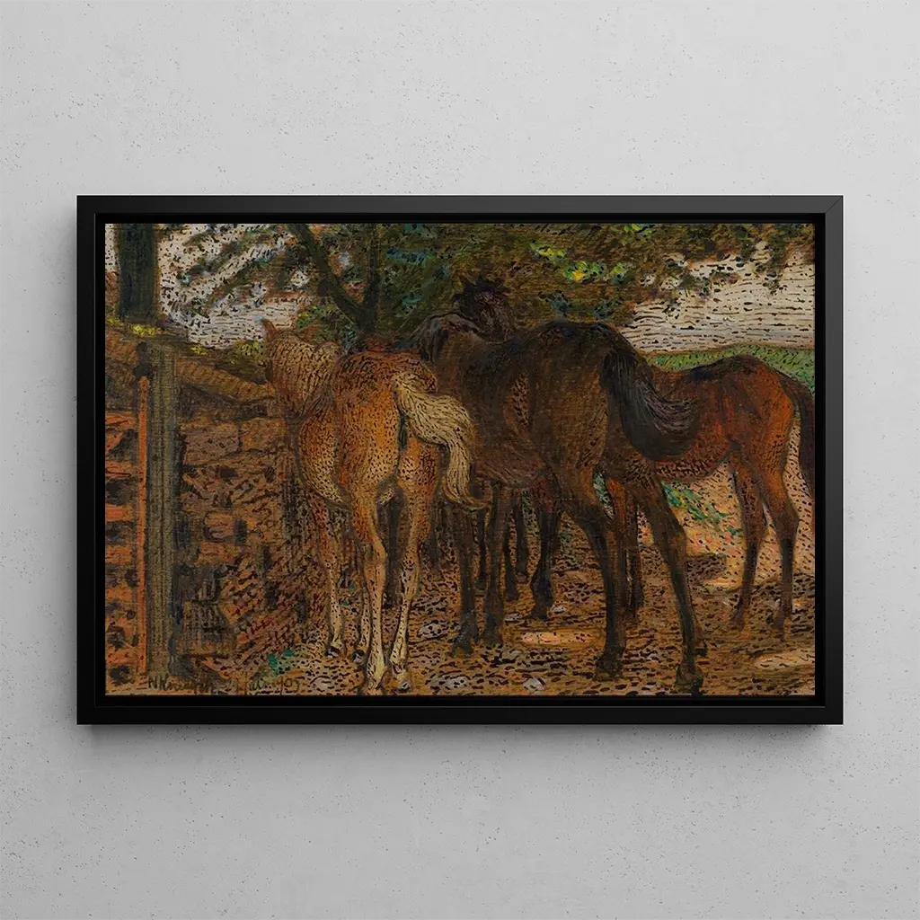 La reproduction de "Près du mur" est une pièce décorative qui saura enrichir n'importe quel intérieur, que ce soit dans un salon, un bureau ou une chambre. Sa qualité d'impression garantit une fidélité remarquable aux couleurs et aux détails de l'œuvre originale, permettant ainsi de profiter pleinement de l'atmosphère unique qu'elle dégage. En intégrant ce tableau dans votre décoration, vous apportez une touche d'élégance et de sérénité à votre espace. L'attrait esthétique de cette toile en fait un choix idéal pour ceux qui souhaitent créer un environnement inspirant et apaisant, tout en célébrant l'art de Nils Kreuger.