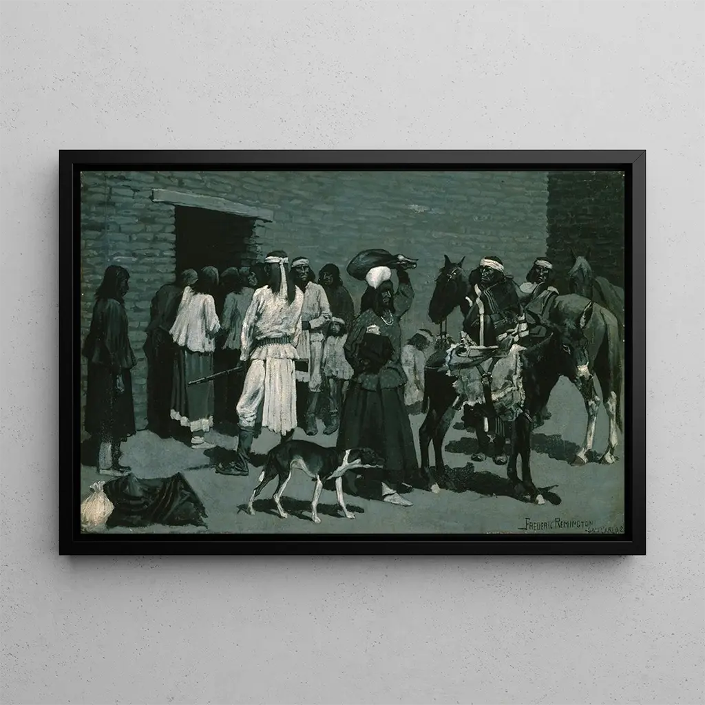 El cuadro Village indien Pueblo de Frederic Remington nos transporta al corazón de los paisajes majestuosos del suroeste estadounidense. Esta obra vibrante representa una escena de vida en un pueblo Pueblo, donde las casas de adobe se integran armoniosamente en el entorno natural. Los colores cálidos, que van desde los ocres hasta los rojos profundos, evocan la tierra y el cielo, mientras que los personajes, vestidos con trajes tradicionales, añaden una dimensión humana a esta representación. Remington, con su técnica precisa y dinámica, logra capturar la esencia de la cultura amérindiana, rindiendo homenaje a un modo de vida en perfecta simbiosis con la naturaleza.
