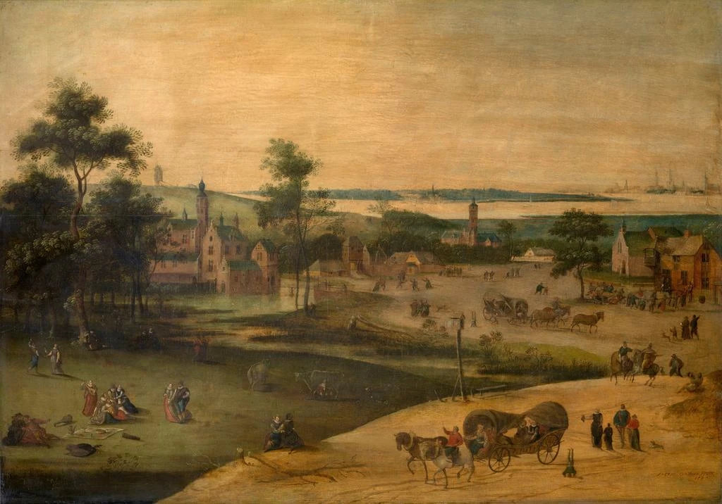 En Village sur l'Escaut, Jacob Grimmer nos sumerge en una representación vibrante y colorida de un paisaje rural. Las casas con fachadas cálidas, rodeadas de vegetación, se reflejan suavemente en las aguas tranquilas del Escaut. La luz juega un papel esencial en esta composición, iluminando los detalles arquitectónicos y creando una atmósfera pacífica. Los personajes, aunque pequeños en el cuadro, añaden una dimensión humana a esta escena bucólica, evocando la sencillez y la belleza de la vida cotidiana junto al agua.