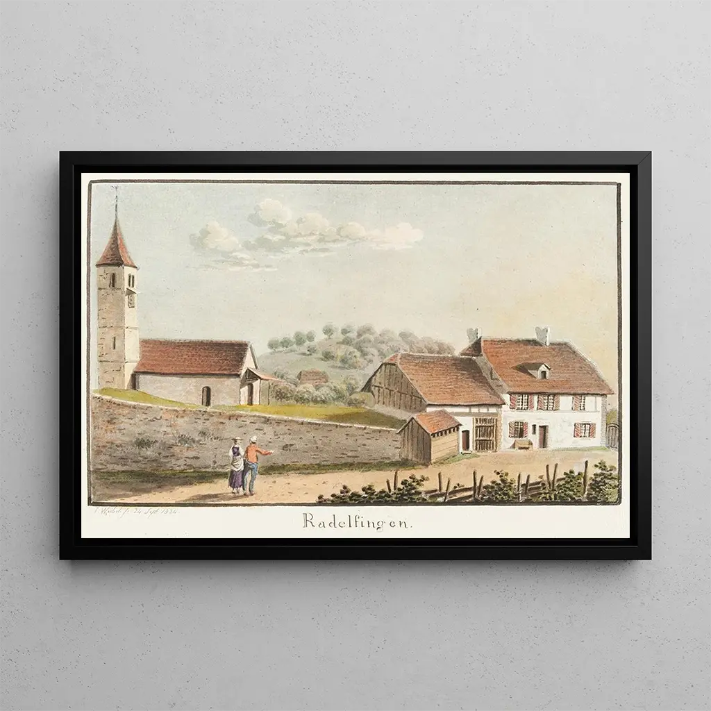 Radelfingen : una mirada a la vida rural suiza La impresión artística de "Radelfingen" nos sumerge en un paisaje rural suizo donde la naturaleza y la arquitectura se encuentran en armonía. Los tonos terrosos y las matices de verde evocan la riqueza del campo, mientras que los detalles minuciosos de los edificios añaden una dimensión histórica a la escena. Jakob Samuel Weibel, con su estilo realista, logra capturar la esencia misma de la vida cotidiana en este pueblo, rindiendo homenaje a la belleza de los paisajes suizos. La atmósfera tranquila que emana de esta obra invita a la ensoñación y a la evasión. Jakob Samuel Weibel : un testigo de su tiempo Jakob Samuel Weibel, activo en el siglo XIX, es un artista suizo cuyas obras reflejan la vida rural de su época. Influenciado por el realismo, supo representar con precisión los paisajes y las escenas de la vida cotidiana. Sus obras testimonian un profundo respeto por la naturaleza y la cultura local, convirtiéndolo en un importante representante del arte suizo. Aunque menos conocido que algunos de sus contemporáneos, Weibel dejó una huella significativa en el arte regional, capturando momentos de sencillez y belleza. Una adquisición decorativa con múltiples ventajas La impresión artística de "Radelfingen" es una pieza decorativa que enriquecerá su interior con su encanto rural. Ideal para un salón, una oficina o un dormitorio, esta obra aporta un toque de autenticidad y serenidad a su espacio. Su calidad de reproducción garantiza fidelidad en los detalles y los colores de la obra original, al tiempo que ofrece un atractivo estético indudable. Al elegir esta obra, opta por una decoración que evoca la belleza de los paisajes suizos, creando así una atmósfera cálida y acogedora en su hogar.