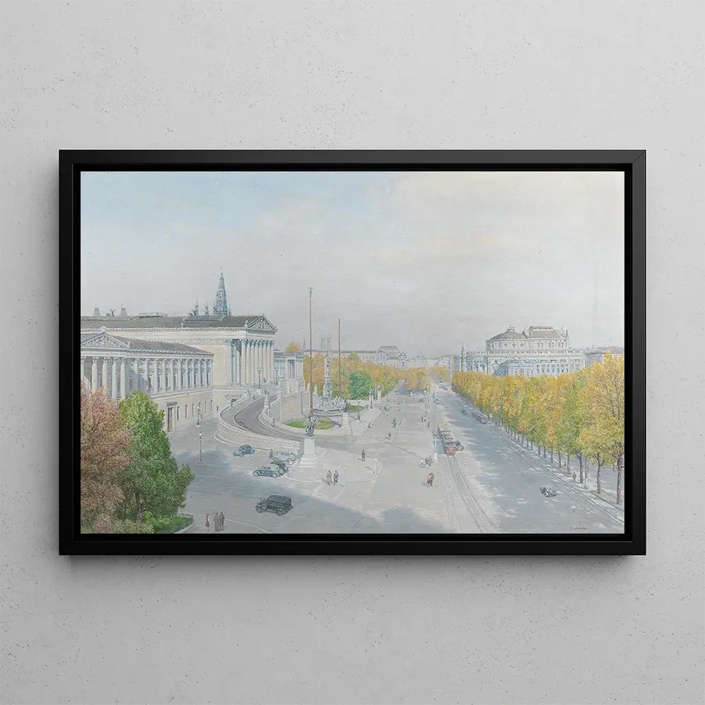 Impresión artística de la Ringstraße con Parlamento y Burgtheater: una sinfonía arquitectónica de Viena «Ringstraße con Parlamento y Burgtheater» es una obra que captura la esencia misma de la arquitectura vienesa. La tela representa la majestuosidad de los edificios emblemáticos que bordean esta famosa avenida, con una atención especial a los detalles arquitectónicos. Los colores vibrantes y los juegos de luz crean una atmósfera viva, casi palpable, donde casi se puede escuchar el murmullo de la ciudad. La técnica de pintura utilizada, probablemente al óleo, permite reflejar la riqueza de las texturas y las sombras, ofreciendo así una visión dinámica de esta arteria emblemática. Thomas Leitner: un testigo del auge cultural de Viena Thomas Leitner, artista del siglo XX, supo capturar el espíritu de su tiempo a través de sus obras. Desarrollándose en un contexto donde Viena era un centro cultural importante, fue influenciado por los movimientos artísticos de su época, especialmente el realismo y el impresionismo. Sus representaciones de la ciudad reflejan una profunda admiración por su patrimonio arquitectónico y cultural. Como artista, Leitner contribuyó a inmortalizar momentos clave de la historia vienesa, haciendo de sus obras testimonios valiosos de la evolución urbana y artística. Una adquisición decorativa con múltiples ventajas La impresión artística de «Ringstraße con Parlamento y Burgtheater» es una pieza decorativa que aportará un toque de elegancia a su interior. Ya sea en una sala de estar, una oficina o un dormitorio, esta tela cautivará las miradas y despertará interés. Su calidad de impresión garantiza fidelidad en los colores y detalles de la obra original, haciendo de esta impresión artística una elección ideal para los amantes de la arquitectura y la historia. Al integrar esta obra en su decoración, ofrece a su espacio un ambiente refinado y una invitación a explorar la belleza de Viena.