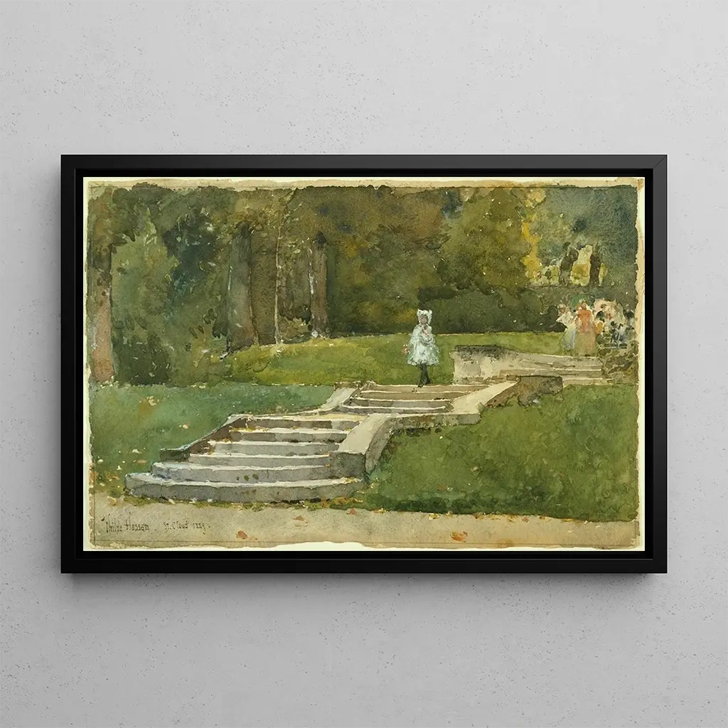La impresión artística Saint-Cloud de Childe Hassam nos sumerge en un universo vibrante donde la luz danza sobre los paisajes. Este cuadro, impregnado de colores brillantes, captura la esencia de un momento fugaz, donde los reflejos del sol se mezclan con matices de verde y azul. La técnica impresionista de Hassam, caracterizada por trazos de pincel rápidos y toques de color yuxtapuestos, crea una atmósfera viva y dinámica. Casi se puede sentir la brisa y el susurro de las hojas, invitando al espectador a sumergirse en esta escena bucólica.