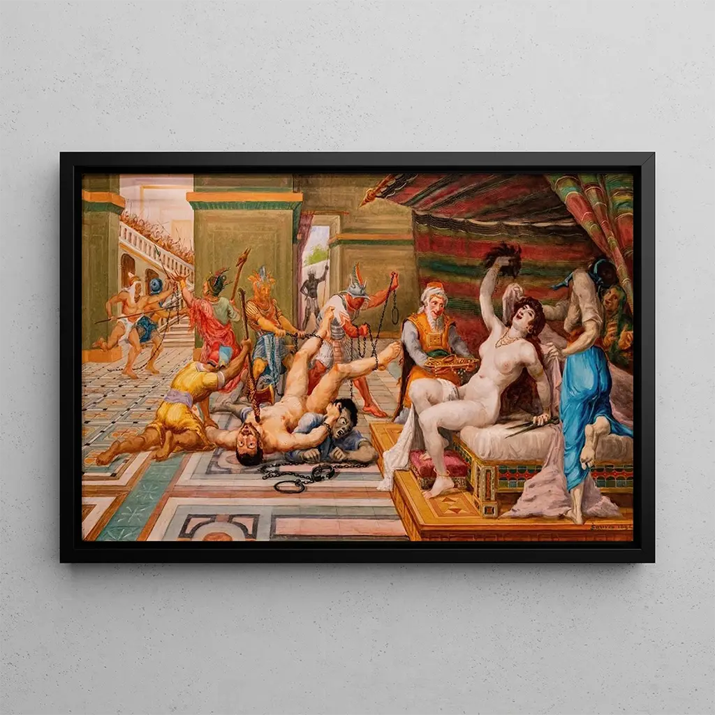 Samson y Dalila : una tragedia amorosa cautivadora La impresión artística de "Samson y Dalila" de Jean-Baptiste Cariven evoca una escena dramática y llena de emoción. Esta obra destaca el momento clave del encuentro entre Samson, el héroe bíblico, y Dalila, la femme fatale. Los colores ricos y los contrastes impactantes entre la luz y la sombra refuerzan la tensión de esta composición. Cariven utiliza una técnica hábil para dar vida a los personajes, cuyas expresiones y posturas transmiten tanto la pasión como la traición. La atmósfera está impregnada de misterio, invitando al espectador a reflexionar sobre los temas del amor, la pérdida y el poder. Jean-Baptiste Cariven : un maestro del neoclasicismo Jean-Baptiste Cariven, activo a principios del siglo XIX, es un artista francés cuyo trabajo se inscribe en el movimiento neoclásico. Influenciado por los grandes maestros de la pintura, supo combinar rigor académico y sensibilidad romántica. Cariven es especialmente conocido por sus escenas históricas y mitológicas, donde logra capturar la esencia de las emociones humanas. Su interpretación de "Samson y Dalila" demuestra su talento para tratar relatos bíblicos con una profundidad psicológica, convirtiéndolo en una figura importante de su época. Una adquisición decorativa con múltiples ventajas La impresión artística de "Samson y Dalila" es una pieza maestra que enriquecerá su decoración interior, ya sea en una sala de estar, un comedor o una oficina. Con su calidad de impresión excepcional y fidelidad a la obra original, este cuadro atrae la mirada y genera admiración. Al integrar esta obra en su espacio, aporta un toque de sofisticación y cultura, celebrando a la vez una obra maestra del neoclasicismo. Esta pieza es ideal para quienes desean combinar estética e historia, creando una atmósfera cautivadora.