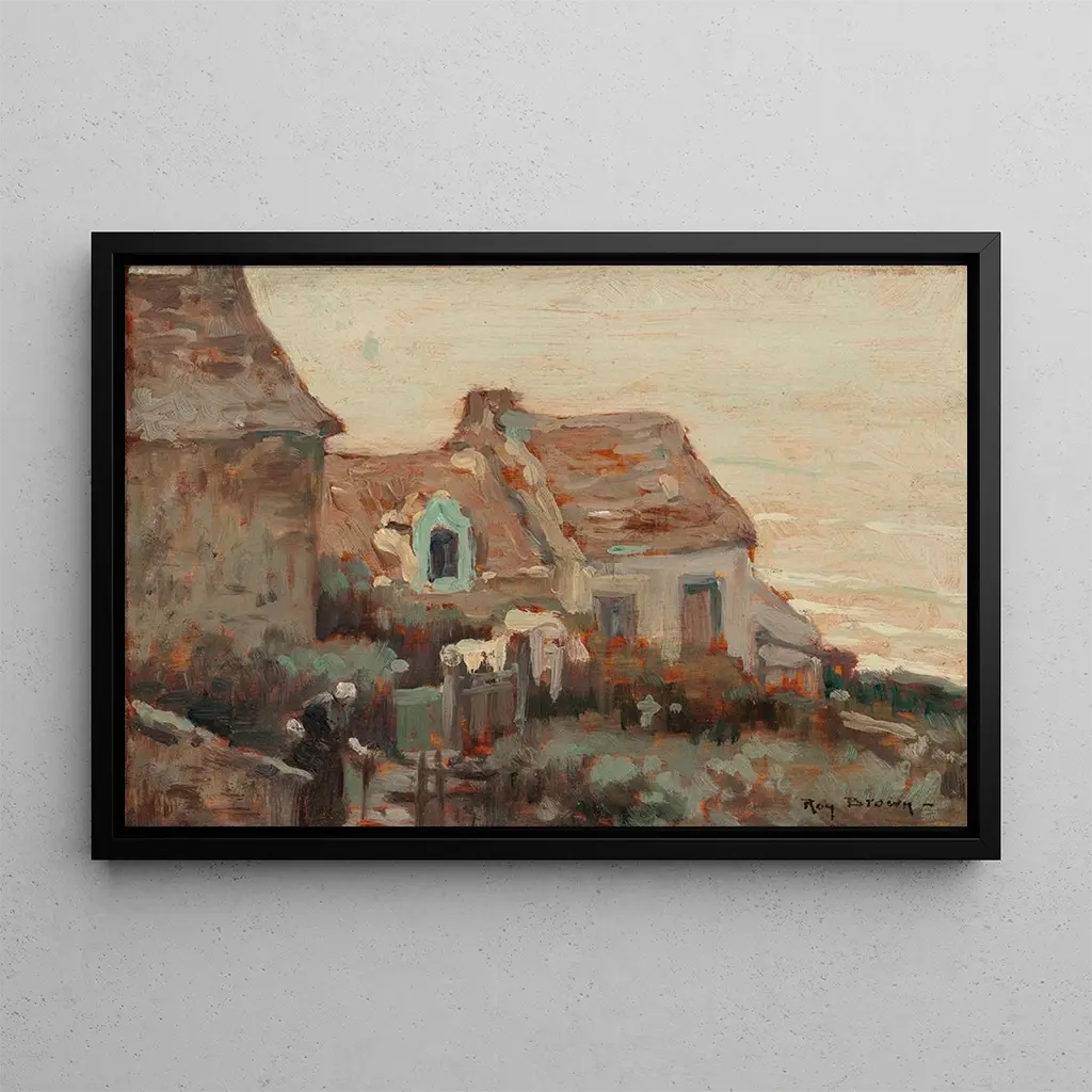 Roy H Brown est un artiste dont le travail se concentre sur la représentation des paysages et des scènes de la vie quotidienne, particulièrement en Bretagne. Actif au début du XXe siècle, il s’inscrit dans un mouvement artistique qui valorise la beauté des régions rurales françaises, influencé par les courants impressionnistes. Son approche se caractérise par une attention particulière aux détails et une palette de couleurs qui évoque la lumière et l’atmosphère des lieux qu’il peint. Brown a su capturer l’essence de la Bretagne, un territoire riche en traditions et en paysages, faisant de lui un artiste incontournable pour ceux qui s’intéressent à l’art régional.