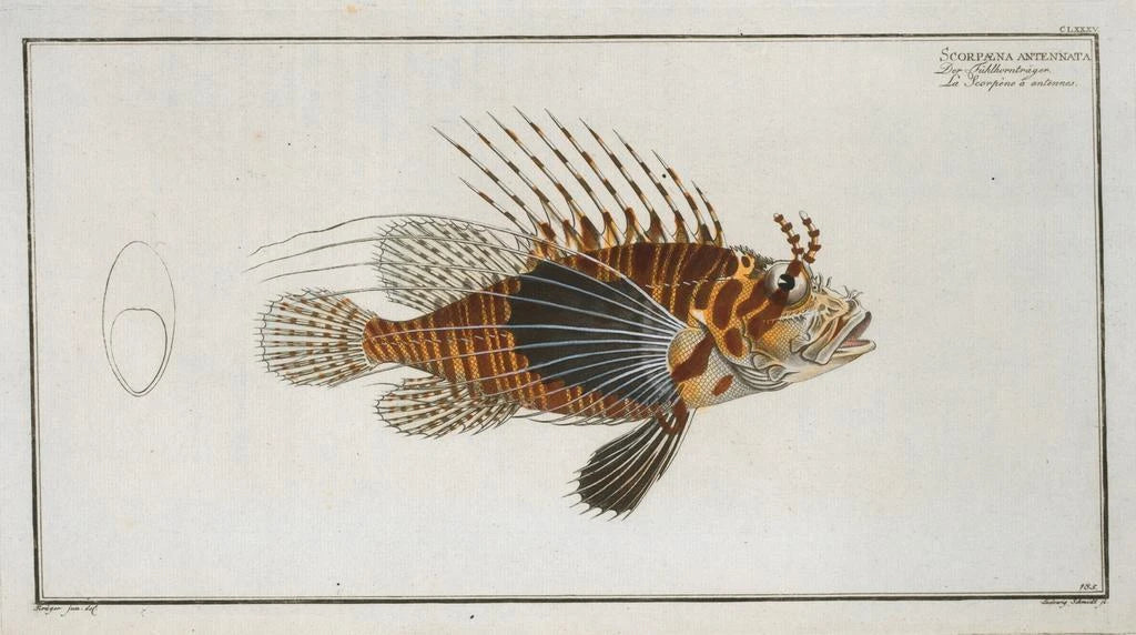 Marcus Elieser Bloch, naturalista y artista del siglo XVIII, es reconocido por sus estudios profundos sobre los peces. Su obra es el resultado de una época en la que la exploración científica y el arte se entrelazaban para documentar la biodiversidad. Bloch viajó por Europa y más allá, inspirándose en los descubrimientos marítimos para enriquecer sus representaciones. Su enfoque meticuloso no solo permitió comprender mejor las especies marinas, sino que también estableció un estándar para la ilustración científica, combinando precisión y estética.