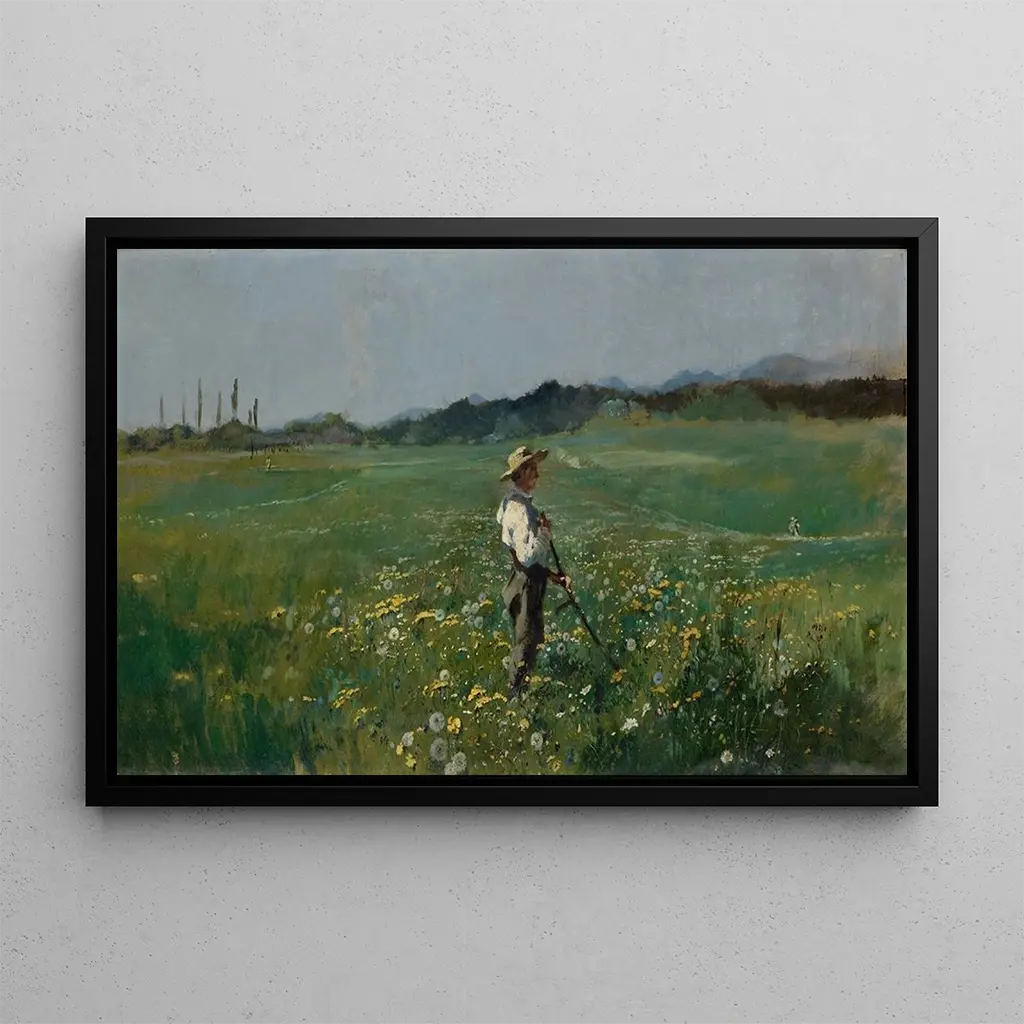 Faucheur en un prado floreciente: una oda a la naturaleza y al trabajo en los campos En esta impresión artística titulada "Faucheur en un prado floreciente", el artista Frank Buchser captura con gran delicadeza la belleza del mundo rural. La tela despliega una paleta de colores vibrantes, donde los verdes brillantes de los campos se mezclan con los toques dorados de las flores. La técnica de óleo sobre lienzo permite reproducir las texturas de la vegetación y la luz del sol filtrándose a través de las hojas. La atmósfera que emana de la obra evoca una profunda serenidad, invitando al espectador a sumergirse en este momento de trabajo arduo, mientras celebra la belleza de la naturaleza circundante. Frank Buchser: un testigo de su época y de la vida rural Frank Buchser, pintor suizo del siglo XIX, es conocido por sus representaciones de la vida campesina y de los paisajes. Influenciado por el realismo, se inscribe en un período donde el arte se orienta hacia temas más auténticos y cercanos a la vida cotidiana. Sus obras reflejan una sensibilidad particular por las escenas de la vida rural, a menudo impregnadas de nostalgia por un mundo en transformación. Buchser también fue un viajero, lo que le permitió integrar diversas influencias en su arte, enriqueciendo así su enfoque pictórico. Su trabajo sigue siendo un valioso testimonio de la relación entre el hombre y la naturaleza en una época en la que la industrialización comenzaba a transformar los paisajes. Una adquisición decorativa con múltiples ventajas La impresión artística de "Faucheur en un prado floreciente" es una pieza decorativa que enriquecerá cualquier interior, ya sea en una sala de estar, una oficina o un dormitorio. Su calidad de reproducción garantiza una fidelidad notable a la obra original, permitiendo apreciar cada detalle y matiz de color. Este cuadro aporta un toque de frescura y serenidad a su decoración, mientras evoca temas de trabajo y naturaleza. Su atractivo estético la convierte en una opción ideal para quienes desean crear un ambiente cálido y acogedor en su hogar, celebrando al mismo tiempo el legado artístico de Frank Buchser.