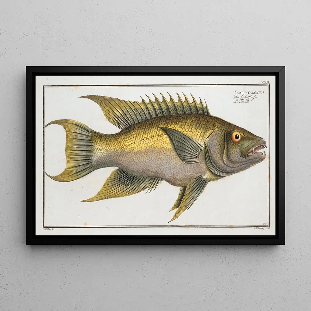 Marcus Elieser Bloch, naturalista y artista del siglo XVIII, desempeñó un papel fundamental en la ilustración de las especies marinas. Su obra se inscribe en una época en la que la ciencia y el arte se unen, permitiendo comprender mejor la biodiversidad acuática. Influenciado por los descubrimientos de su tiempo, Bloch supo combinar precisión científica y sensibilidad artística. Sus ilustraciones, entre ellas Sparus falcatus, son consideradas referencias en el campo de la ichthyología, testimonio de la importancia del arte en la documentación de las especies. Su legado perdura, inspirando aún hoy a los apasionados de la biología marina y del arte.