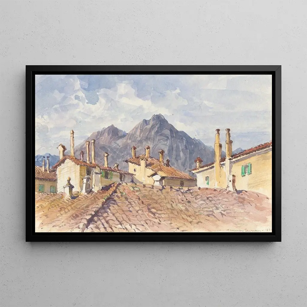 La impresión artística de Toits et montagnes de Truman Seymour est une représentation saisissante des paysages américains, où l'harmonie entre l'architecture et la nature est mise en avant. Les toits des maisons, peints avec des nuances de rouge et de brun, contrastent avec les majestueuses montagnes en arrière-plan, enveloppées d'une brume légère. La technique de Seymour, qui combine des coups de pinceau rapides et des détails minutieux, crée une atmosphère vivante et dynamique. Ce tableau invite à une exploration visuelle des différentes strates de la composition, où chaque élément raconte une histoire.