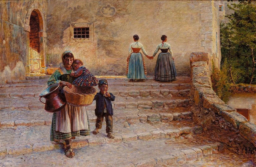 Une pobre italiana con sus hijos: una emotiva impresión artística de la vida cotidiana