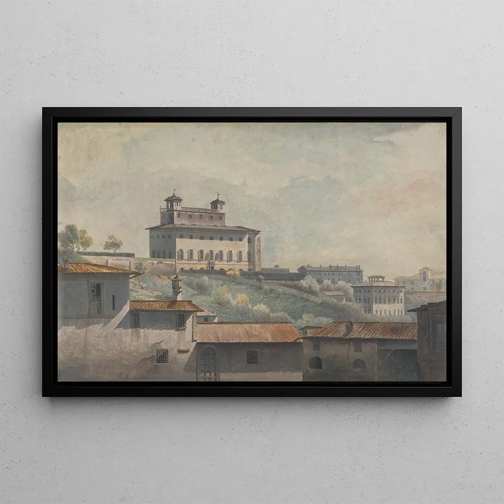 Thomas Jones, pintor galés del siglo XVIII, es famoso por sus paisajes y vistas arquitectónicas. Evolucionando en una época en la que el Gran Tour era apreciado, viajó por Europa, empapándose de las culturas y los paisajes que encontró. Su estancia en Roma influyó profundamente en su obra, especialmente con cuadros como "Villa Médicis Roma", que testimonian su admiración por la arquitectura clásica. Jones supo combinar su sentido de la observación con una sensibilidad artística, creando obras que capturan la esencia de los lugares visitados y su atmósfera única.