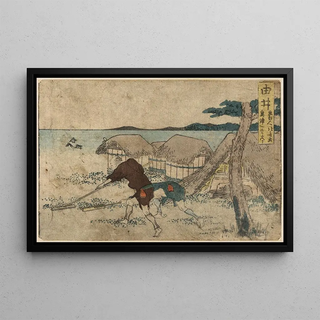 La impresión artística Yui de Katsushika Hokusai evoca una escena impregnada de serenidad y movimiento. Los colores vibrantes y los detalles minuciosos de esta obra capturan la esencia de la cultura japonesa, donde cada elemento parece contar una historia. La técnica de la estampa en madera, característica de Hokusai, confiere a esta obra una atmósfera a la vez dinámica y tranquilizadora. Las líneas fluidas y los motivos delicados se entrelazan para crear una composición armoniosa, invitando al espectador a sumergirse en un universo donde el tiempo parece suspendido.