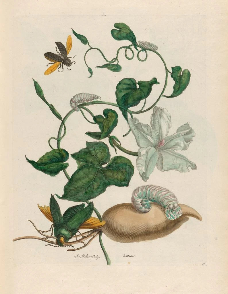 Reproducción artística de alta calidad de "Battattes" por Maria Sibylla Merian. Esta obra maestra captura la belleza y la intricada naturaleza de la obra original, perfecta para decorar su hogar u oficina con un toque de elegancia clásica. Disponible en varios tamaños y acabados para adaptarse a su estilo y espacio. Añada esta pieza única a su colección de arte o utilícela como un regalo sofisticado para los amantes del arte y la historia natural. Cada impresión se realiza con materiales de primera calidad para garantizar una reproducción duradera y vibrante. Descubra la magia de la naturaleza a través de esta exquisita reproducción artística.