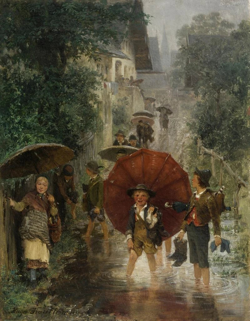 Después de la escuela, los niños bajo la lluvia - Hugo Kauffmann
