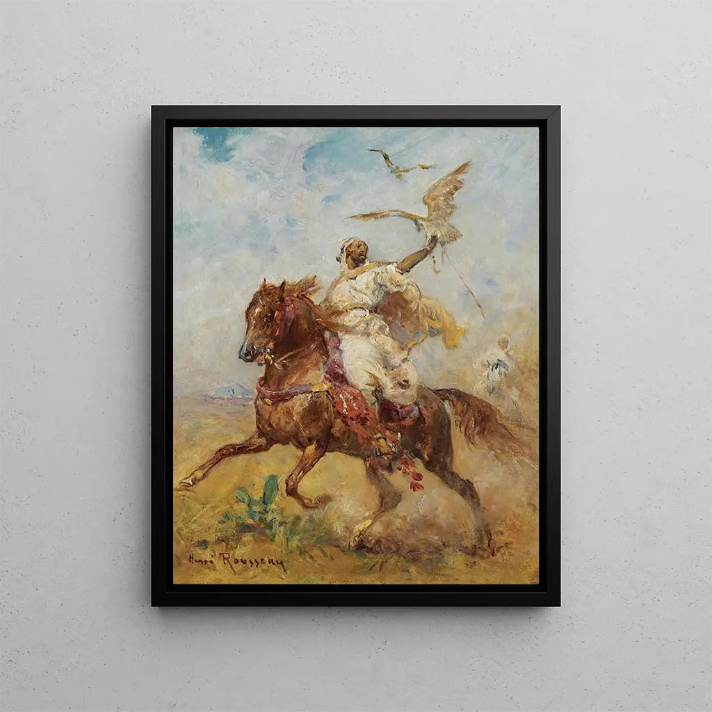 El halconero: una escena de nobleza y tradición En "El halconero", Henri Émilien Rousseau nos sumerge en una atmósfera impregnada de nobleza y tradición. La tela representa a un hombre con traje de época, sosteniendo un halcón en su puño, símbolo de la caza y del dominio. Los colores ricos y profundos, que van desde los tonos tierra hasta los verdes exuberantes, crean una armonía visual cautivadora. La técnica de Rousseau, que combina realismo y toques impresionistas, da vida a cada detalle, desde el plumaje del ave hasta las texturas de la ropa. Esta obra invita a la contemplación, evocando un mundo donde el hombre y la naturaleza coexisten en perfecta simbiosis. Henri Émilien Rousseau: un maestro del realismo en el siglo XIX Henri Émilien Rousseau, activo en el siglo XIX, es un artista cuyo trabajo se distingue por su atención a los detalles y su respeto por las tradiciones artísticas. Influenciado por el realismo y el impresionismo, supo capturar momentos de la vida cotidiana con una sensibilidad única. Rousseau a menudo exploró temas relacionados con la naturaleza y la vida rural, reflejando las preocupaciones de su época. Su obra "El halconero" testimonia esta búsqueda de autenticidad y una profunda admiración por las tradiciones de la caza, un tema apreciado por los aristócratas de su tiempo. Su contribución al arte francés sigue siendo significativa, marcando una transición hacia estilos más modernos. Una adquisición decorativa con múltiples ventajas La impresión artística de "El halconero" es una pieza decorativa que enriquecerá su interior, ya sea en una sala de estar, una oficina o un dormitorio. La calidad de impresión garantiza una fidelidad notable a los colores y detalles de la obra original, permitiendo disfrutar de la estética de Rousseau en su espacio vital. Este cuadro aporta un toque de elegancia y refinamiento, además de suscitar la admiración de los visitantes. Al elegir esta tela, opta por un elemento decorativo que combina historia, arte y belleza, creando así una atmósfera cálida y acogedora.