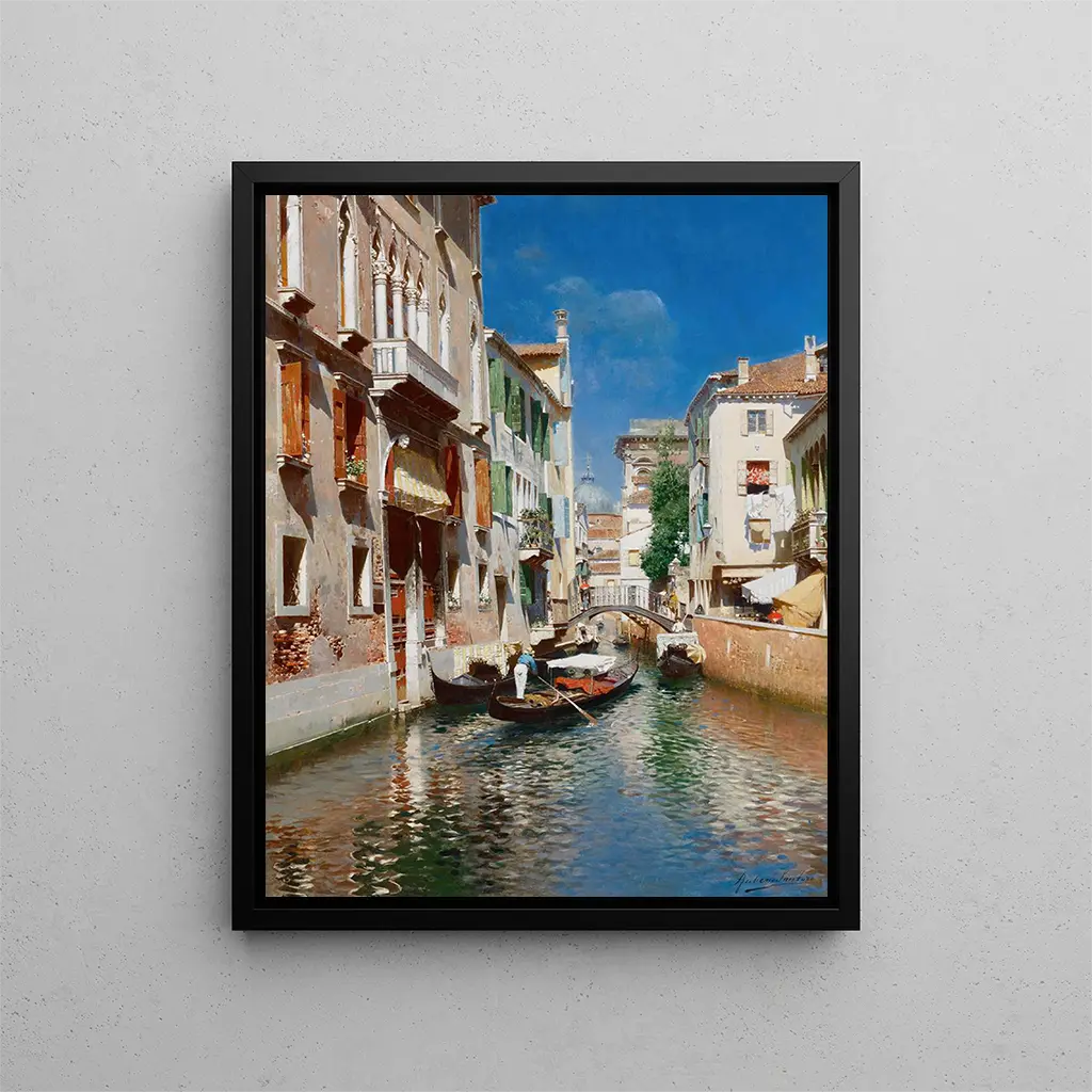 Reproducción artística de Gondolas en Venecia por Rubens Santoro, perfecta para decorar tu hogar u oficina con un toque de elegancia y romanticismo. Disponible en varios tamaños y acabados de alta calidad para adaptarse a tu estilo. Añade un toque de Venecia a tu espacio con esta hermosa impresión artística.