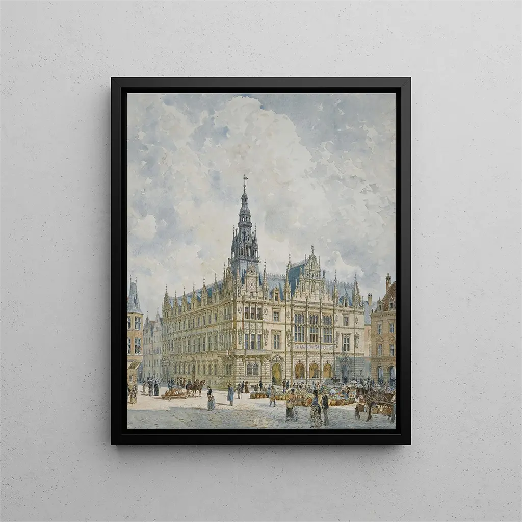 Reproducción artística de la fachada del Ayuntamiento de estilo Renacimiento, obra de Rudolf von Alt. Perfecta para decorar con elegancia y sofisticación cualquier espacio. Disponible en varios tamaños y acabados de alta calidad para satisfacer sus necesidades decorativas.