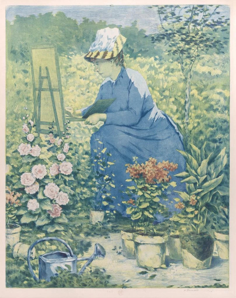 Jeanne Gonzalès pintando en el jardín - Henri-Charles Guérard
