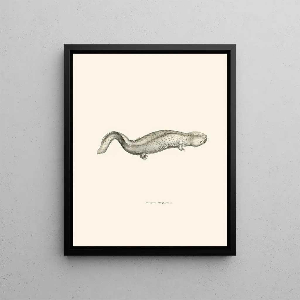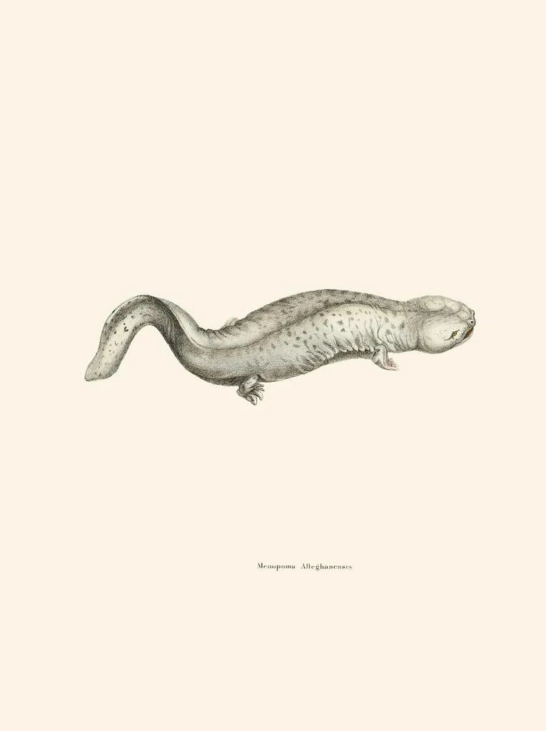 Reproducción artística de Menopoma Alleghanensis por John Edwards Holbrook, perfecta para decorar tu hogar con un toque de historia natural y elegancia.