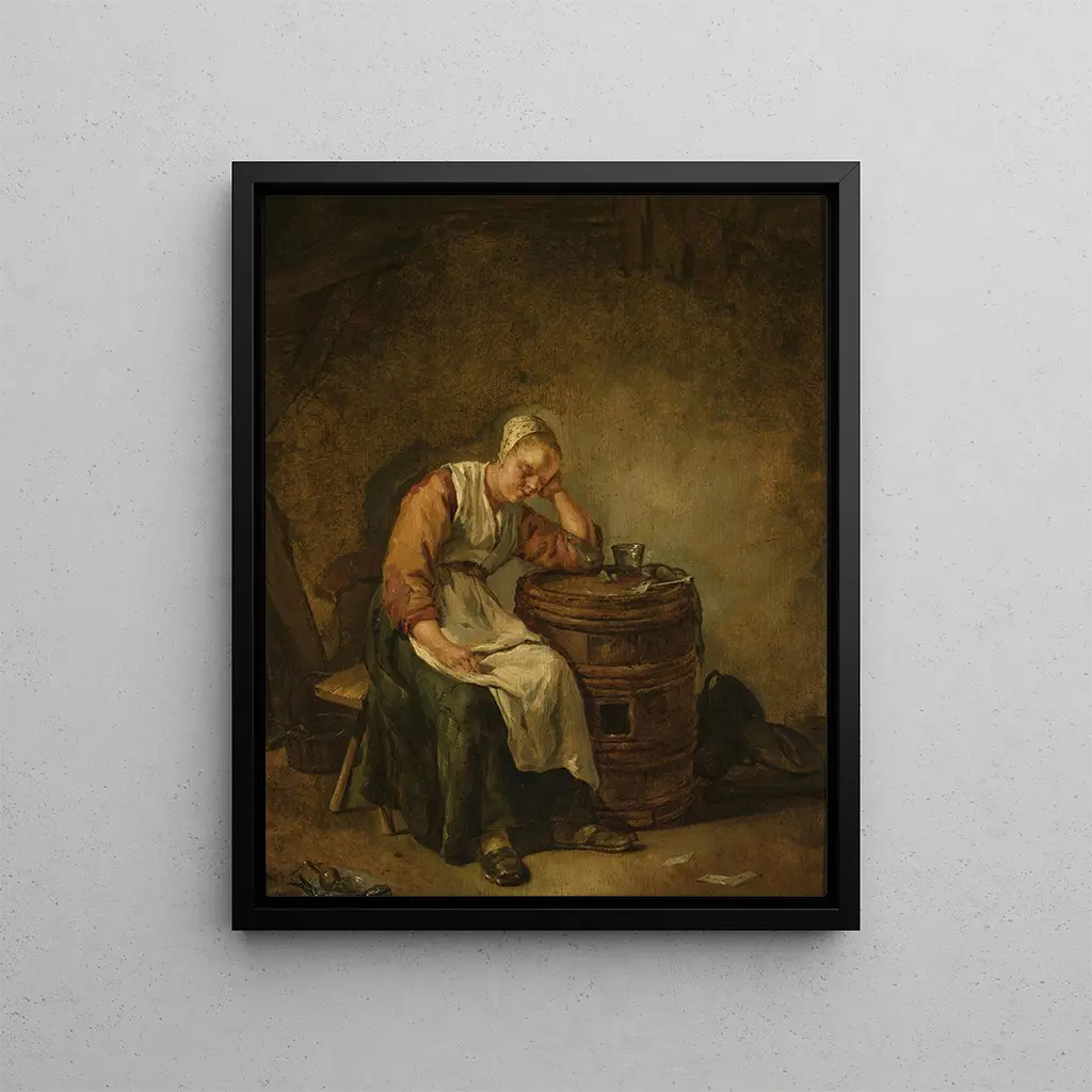 Reproducción artística de la obra "Mujer dormida" de Jacob Toorenvliet, perfecta para decorar tu hogar con elegancia y sofisticación. Esta impresión en alta calidad captura la serenidad y belleza de la figura femenina en un momento de descanso, ideal para crear un ambiente relajante y refinado en cualquier espacio. Disponible en varios tamaños y acabados, esta obra es una adición imprescindible para los amantes del arte clásico y la decoración elegante.