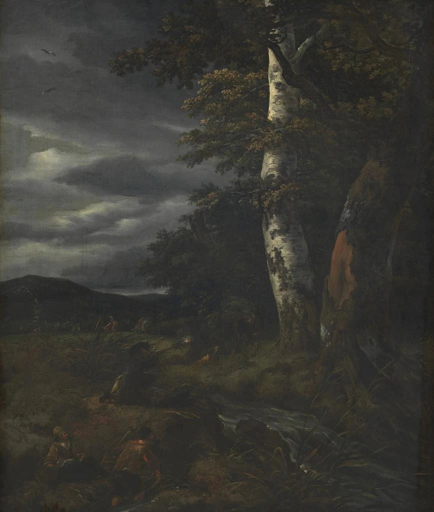 Paisaje con una escena de caza - Jacob van Ruisdael