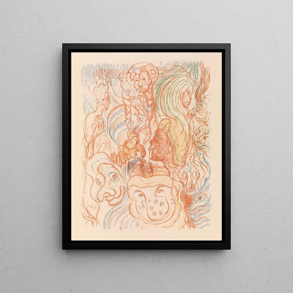 Reproducción artística de la obra maestra de James Ensor, Frontispice. Esta impresión en lienzo o papel de alta calidad captura cada detalle y matiz de la obra original, permitiéndote disfrutar de la creatividad y la expresión únicas del artista belga.