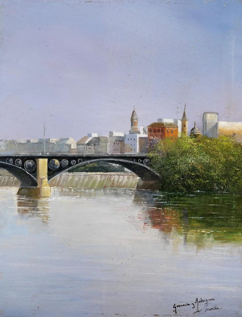 Reproducción artística del Puente de Sevilla, obra del artista Manuel García y Rodríguez. Perfecta para decorar tu hogar u oficina con un toque de elegancia y cultura. Disponible en varios tamaños y acabados de alta calidad para adaptarse a tu espacio. Añade un toque de historia y belleza con esta impresión artística que captura la esencia del emblemático puente sevillano.
