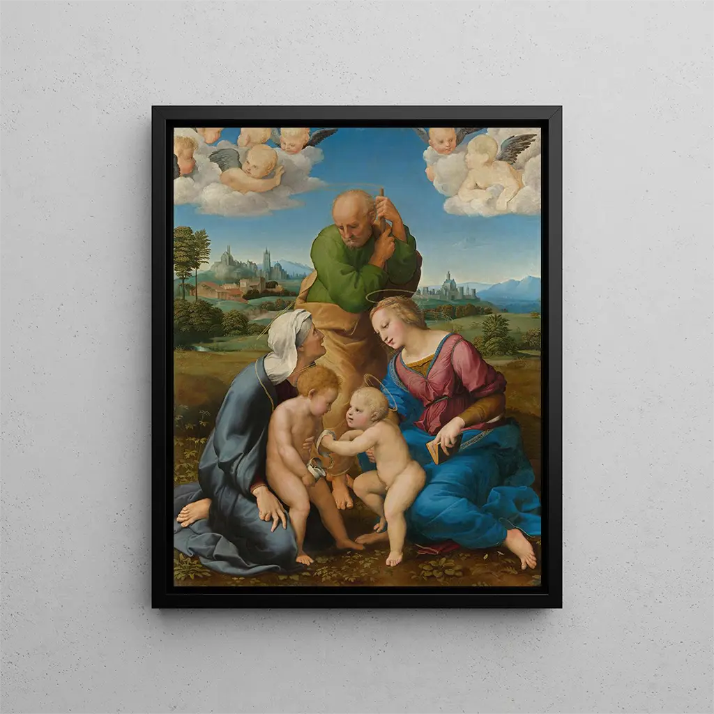 Reproducción artística de la Santa Familia de Canigiani, obra maestra de Rafael. Esta impresión en lienzo o papel captura la delicada composición y la luz suave que caracterizan la obra original, perfecta para decorar su hogar u oficina con un toque de elegancia clásica. Disponible en varios tamaños para adaptarse a su espacio y estilo.