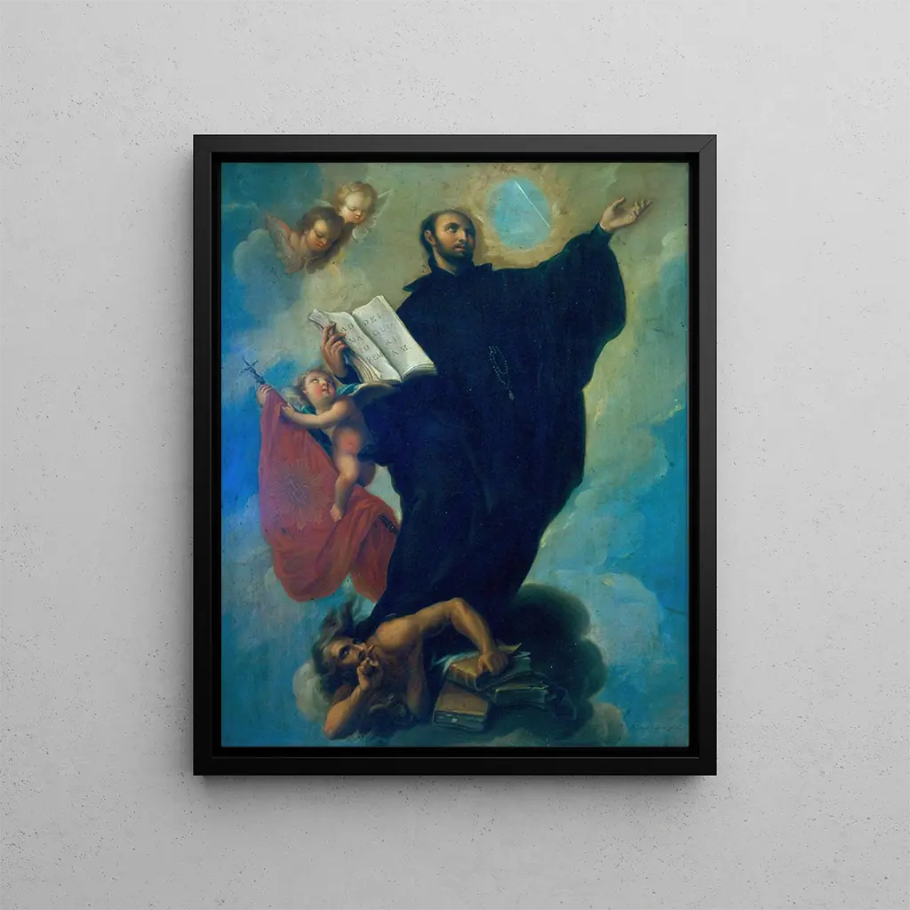 Reproducción artística de la obra maestra de Miguel Cabrera, San Ignacio de Loyola. Esta impresión en lienzo o papel captura la esencia y los detalles finos de la pintura original, perfecta para decorar su hogar u oficina con un toque de historia y espiritualidad.