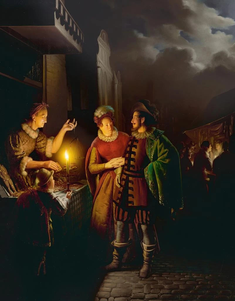 Un vendedor de pan de jengibre a la luz de las velas - Petrus van Schendel