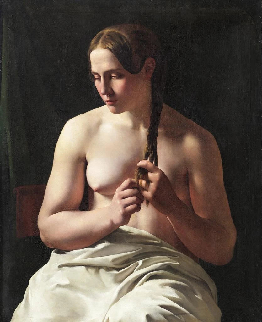 Una mujer frunciendo sus cabellos - Ludvig August Smith