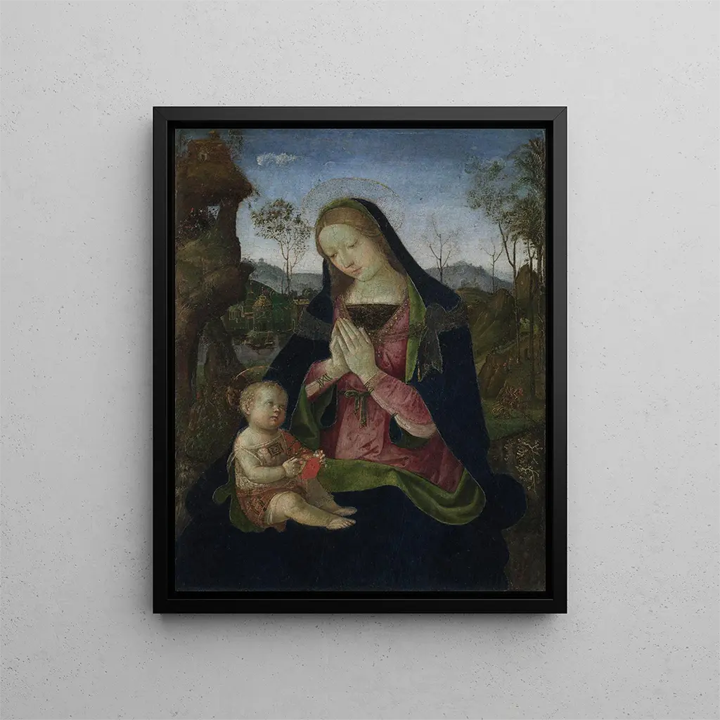 Reproducción artística de la Virgen con el Niño de Pintoricchio, una obra maestra del Renacimiento italiano. Perfecta para decorar su hogar u oficina con un toque de historia y elegancia.