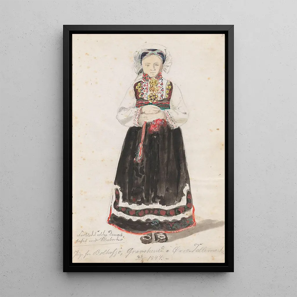 La impresión artística de "Estudio de traje Bolkesjø" es una pieza decorativa que enriquece cualquier espacio, ya sea un salón, una oficina o un dormitorio. Su calidad de impresión, fiel a los detalles de la obra original, la convierte en una elección ideal para los amantes del arte y de la cultura escandinava. El atractivo estético de esta obra, con sus colores vibrantes y sus motivos tradicionales, aporta un toque de autenticidad y encanto a su interior. Al elegir esta pieza, no solo añade una decoración, sino también una obra de historia que sabrá cautivar a sus invitados.