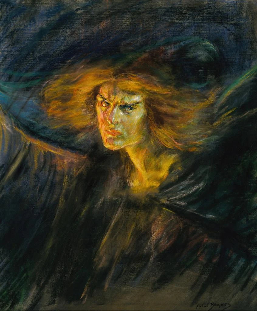 "Lucifer" se distingue por su estilo único que combina el simbolismo y el impresionismo, características de la época en la que Alice Pike Barney creó esta obra. Los colores vibrantes y los trazos fluidos capturan no solo la figura emblemática de Lucifer, sino también la esencia misma de la emoción humana. El rostro del personaje, a la vez seductor y perturbador, expresa una dualidad fascinante, invitando al espectador a una introspección sobre sus propios demonios internos. La composición de la obra, con sus líneas orgánicas y su uso audaz de la luz, crea una atmósfera casi mística, donde cada detalle parece cargado de significado. Este enfoque estilístico hace de "Lucifer" una pieza imprescindible para quienes se interesan en el arte que cuestiona y provoca.