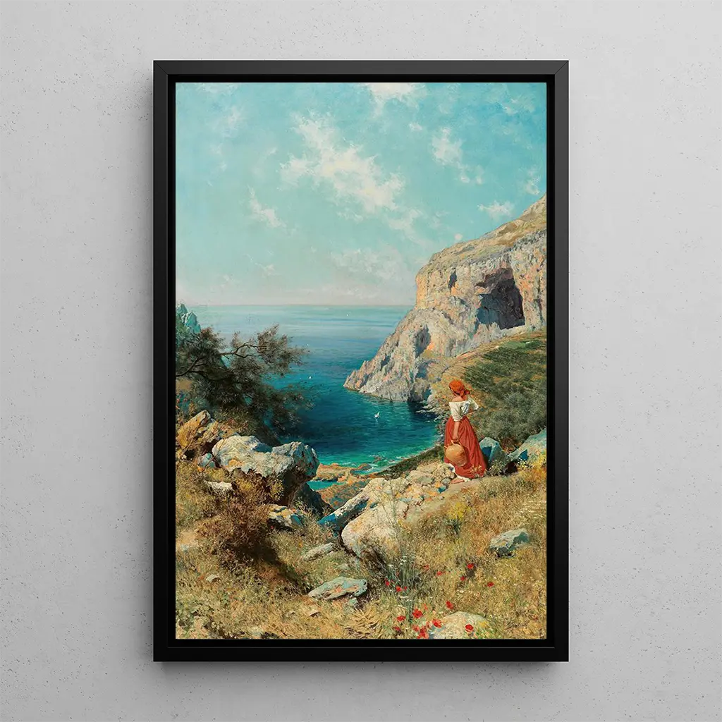 Capri : una escapada hacia la belleza natural La impresión artística de Capri de Paul Schreiber evoca una atmósfera de serenidad y contemplación. Los tonos suaves de azul y verde se mezclan armoniosamente, representando las aguas cristalinas que rodean la isla. La técnica de Schreiber, que combina golpes de pincel delicados y detalles minuciosos, crea una sensación de profundidad y movimiento. La obra invita al espectador a sumergirse en un mundo donde la naturaleza y el arte se encuentran, ofreciendo un refugio visual lejos del bullicio cotidiano. Paul Schreiber : un maestro de la luz y los paisajes Paul Schreiber, activo a principios del siglo XX, es reconocido por sus paisajes luminosos y poéticos. Influenciado por los impresionistas, supo capturar la belleza de los paisajes naturales con un enfoque único. Su trabajo refleja un período en el que el arte se liberaba de las convenciones académicas, abrazando una visión más personal y emocional. Schreiber logró imponerse en el mundo del arte gracias a su capacidad para traducir la luz y la atmósfera en una paleta vibrante, convirtiéndolo en un artista esencial de su época. Una adquisición decorativa con múltiples atributos La impresión artística de Capri es una pieza decorativa que se integra perfectamente en diversos espacios, ya sea en una sala, una oficina o un dormitorio. Su calidad de impresión y su fidelidad a la obra original garantizan un atractivo estético indudable. Al elegir este cuadro, aporta un toque de naturaleza y tranquilidad a su interior, enriqueciendo su decoración con una obra de arte que suscita la evasión y la ensoñación. Este lienzo es mucho más que una simple decoración, es una invitación a la contemplación diaria.