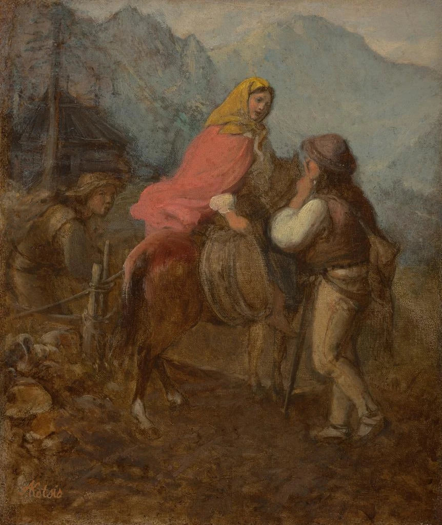Aleksander Kotsis, pintor del siglo XIX, es considerado a menudo como uno de los pioneros de la pintura paisajística en Polonia. Formado en academias de arte europeas, extrae su inspiración de la naturaleza y las tradiciones folclóricas. Su obra está marcada por un deseo de capturar la autenticidad de las escenas de la vida cotidiana, integrando elementos románticos que exaltan la belleza de los paisajes. Kotsis ha sabido imponerse en el mundo del arte combinando técnicas académicas con una sensibilidad moderna, influyendo así en numerosos artistas contemporáneos. Su representación de la mujer en un contexto tradicional, como en "Una mujer de las Highlands a caballo", subraya su compromiso de valorizar el papel de las mujeres en la sociedad, al mismo tiempo que celebra su conexión con la tierra y la cultura.