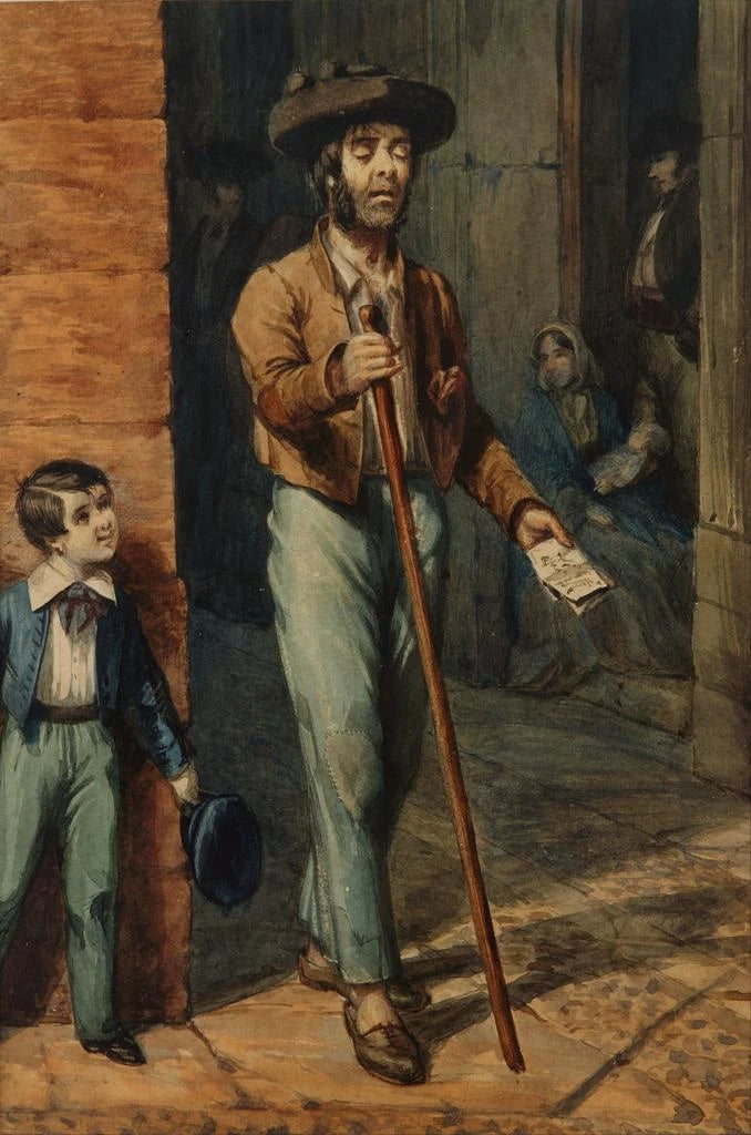 Aveugle populaire à Cádiz : una escena de vida conmovedora