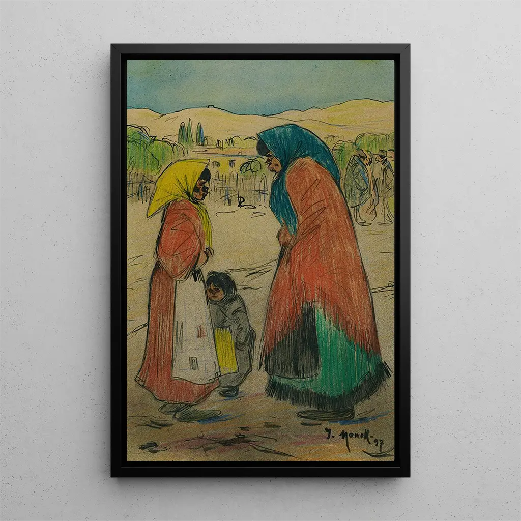 Gitans : una oda a la vida nómada En la obra "Gitans", Isidro Nonell captura la esencia vibrante de la cultura gitana a través de una paleta de colores cálidos y terrosos. Los personajes, con rasgos marcados y expresivos, parecen salir del lienzo, evocando una atmósfera de misterio y pasión. La técnica de Nonell, que combina el realismo con un toque de impresiónismo, da vida a cada detalle, desde los drapeados coloridos de la ropa hasta las miradas profundas de los protagonistas. Esta impresión artística de la obra "Gitans" invita a una contemplación de las emociones humanas y de los relatos de vida, sumergiendo al espectador en el fascinante universo de los gitanos. Isidro Nonell : un artista en el corazón de la España moderna Isidro Nonell, nacido en 1872 en Barcelona, es un pintor español cuya obra se distingue por su compromiso con temas sociales y culturales. Influenciado por el movimiento modernista y las corrientes impresionistas, Nonell supo capturar la belleza y el sufrimiento de los marginados, especialmente los gitanos. Su estilo, caracterizado por colores intensos y formas expresivas, refleja una época en la que España buscaba redefinir su identidad artística. A lo largo de su carrera, dejó un legado duradero, convirtiéndolo en una figura emblemática de la pintura española de principios del siglo XX. Una adquisición decorativa con múltiples ventajas La impresión artística de la obra "Gitans" de Isidro Nonell constituye una opción decorativa ideal para diversos espacios de vida. Ya sea en una sala de estar, una oficina o un dormitorio, esta obra aporta un toque de autenticidad y calidez. La calidad de la impresión artística garantiza fidelidad en los colores y detalles de la obra original, permitiendo así disfrutar de su atractivo estético en el día a día. Al integrar esta obra en su interior, no solo embellece su espacio, sino que también invita a una historia rica y emotiva que sabrá cautivar a todos sus visitantes.