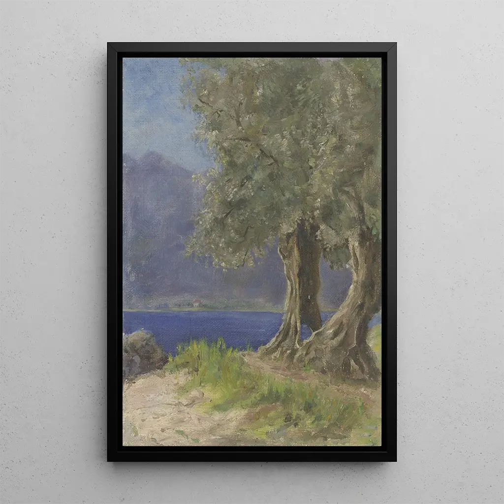 Impresión artística | Grupo de olivos junto a un lago italiano - Fritz Hauck