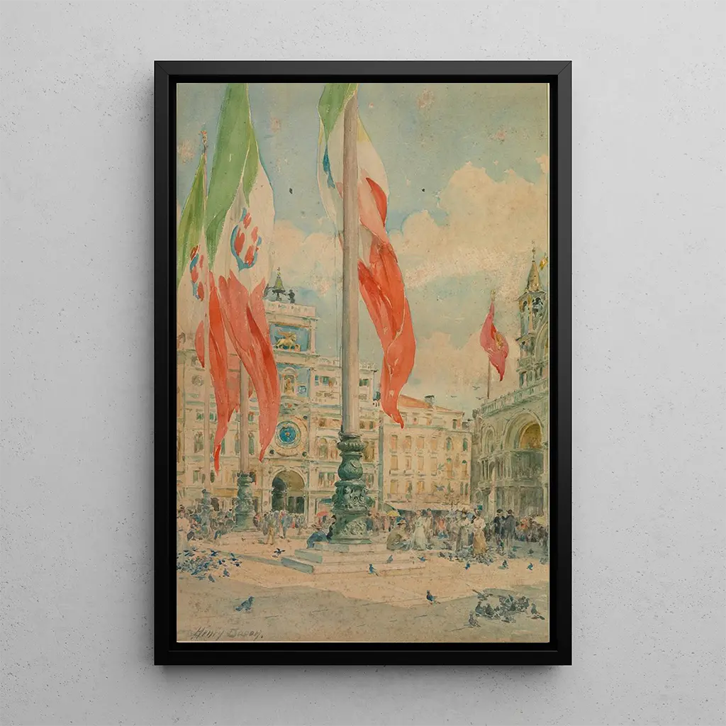 Henry Bacon, conocido por sus representaciones de paisajes y escenas urbanas, supo capturar la esencia de América a través de sus obras. Activo a principios del siglo XX, fue influenciado por los movimientos artísticos de su tiempo, especialmente el impresionismo, desarrollando un estilo propio. Sus cuadros, a menudo inspirados en lugares emblemáticos, reflejan una profunda admiración por la naturaleza y la arquitectura. Al centrarse en escenas como la "Piazza San Marco", Bacon logró establecer un vínculo entre el arte y la cultura, ofreciendo una visión única de la belleza de los espacios públicos.