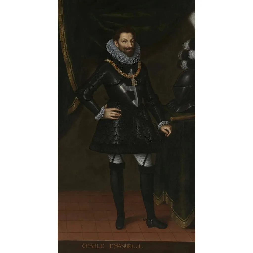 El artista que realizó la impresión artística de Carlo Emanuele I permanece desconocido, lo cual es común en las obras de la corte de esa época. Este cuadro se inscribe en un contexto donde la pintura era un medio para glorificar a los miembros de la realeza y la nobleza. Influenciado por los estilos del Renacimiento italiano, el artista supo captar la personalidad del príncipe respetando las convenciones de la época. Carlo Emanuele I, duque de Saboya, era un personaje clave en la historia de la región, y este retrato testimonia la importancia de la representación de figuras políticas a través del arte.