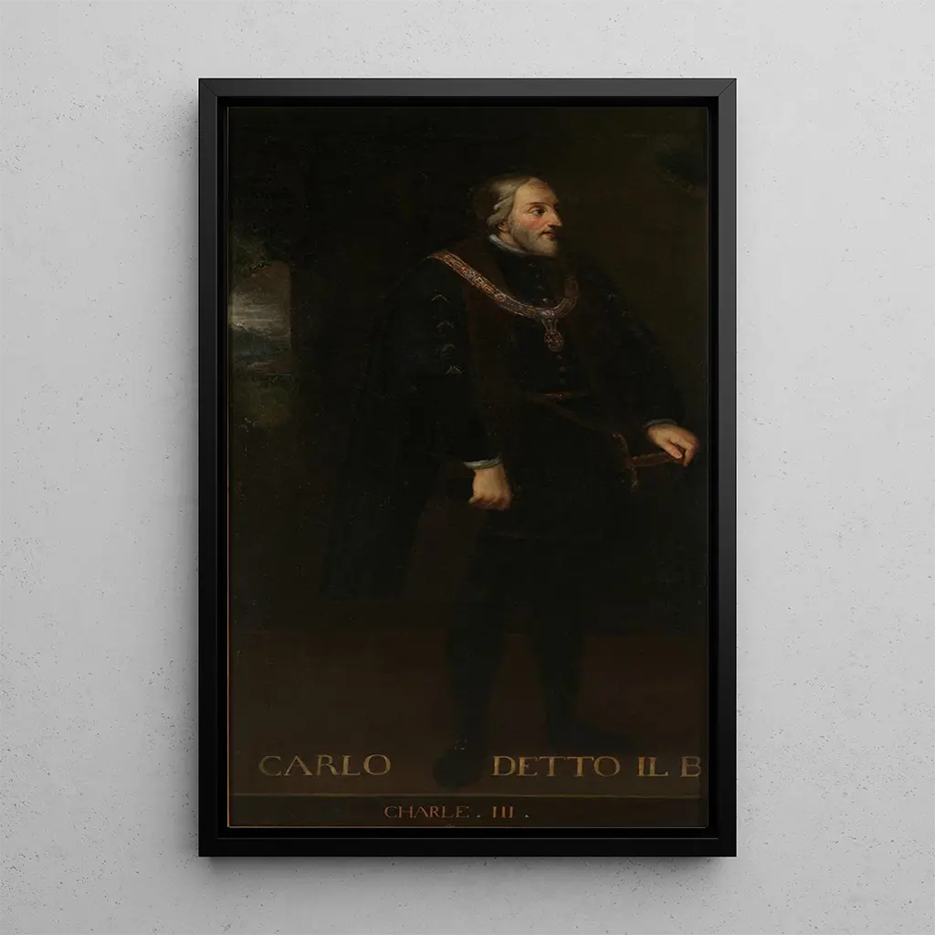 El "Portrait de Carlo II" es una obra que captura la esencia misma de la melancolía y la grandeza de un rey caído. Los colores ricos y oscuros, mezclados con toques dorados, evocan una atmósfera a la vez majestuosa y trágica. La técnica de la pintura al óleo permite representar los detalles del rostro y la vestimenta con una precisión asombrosa, mientras que el fondo oscuro acentúa la presencia imponente del rey. Este cuadro invita al espectador a sumergirse en la historia de un monarca cuyo reinado estuvo marcado por tumultos políticos y luchas de poder.