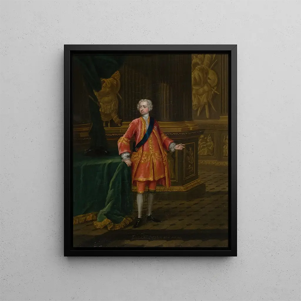 En el mundo del arte, algunas obras trascienden su época y se convierten en testigos atemporales de la historia y la cultura. "Reproducción Frédéric, príncipe de Gales - Charles Philips" es una de esas obras emblemáticas que capturan la esencia de un período pasado, evocando una belleza y una majestuosidad indiscutibles. Este retrato, que representa al hijo del rey Jorge II, encarna no solo el estilo rococó, sino también una visión romántica de la realeza británica en el siglo XVIII. Al contemplar esta obra, el espectador se transporta a un universo donde la elegancia y la nobleza se combinan con una intimidad casi palpable, revelando así las aspiraciones y los sueños de una época pasada. Estilo y singularidad de la obra El estilo de Charles Philips se distingue por su capacidad para fusionar el realismo y la idealización. En "Reproducción Frédéric, príncipe de Gales", el pintor logra capturar no solo los rasgos físicos del joven príncipe, sino también su carácter y su espíritu. Los colores delicados y los detalles minuciosos del vestuario reflejan un saber hacer excepcional. La luz desempeña un papel primordial en esta composición, iluminando el rostro del príncipe y creando un halo de suavidad que acentúa su encanto juvenil. La postura relajada pero segura del sujeto sugiere una confianza innata, al tiempo que evoca la fragilidad de la juventud. Este retrato, por su estética refinada y su enfoque psicológico, se destaca como una obra maestra que invita a la reflexión sobre la representación del poder y de la personalidad. El artista y su influencia Charles Philips, un pintor de origen inglés, supo imponerse en el medio artístico del siglo XVIII gracias a su talento y a su visión única. Formado en el marco de las tradiciones académicas, supo trascenderlas para crear un lenguaje pictórico propio. Su trabajo en retratos reales y aristocráticos marcó su época, influyendo en numerosos artistas que le sucedieron. Philips logró capturar la esencia de los personajes que pintaba, confiriéndoles un aura que va más allá del simple realismo. Al interesarse por la psicología de los sujetos, abrió camino a un nuevo enfoque del retrato, donde la emoción y la personalidad son fundamentales.