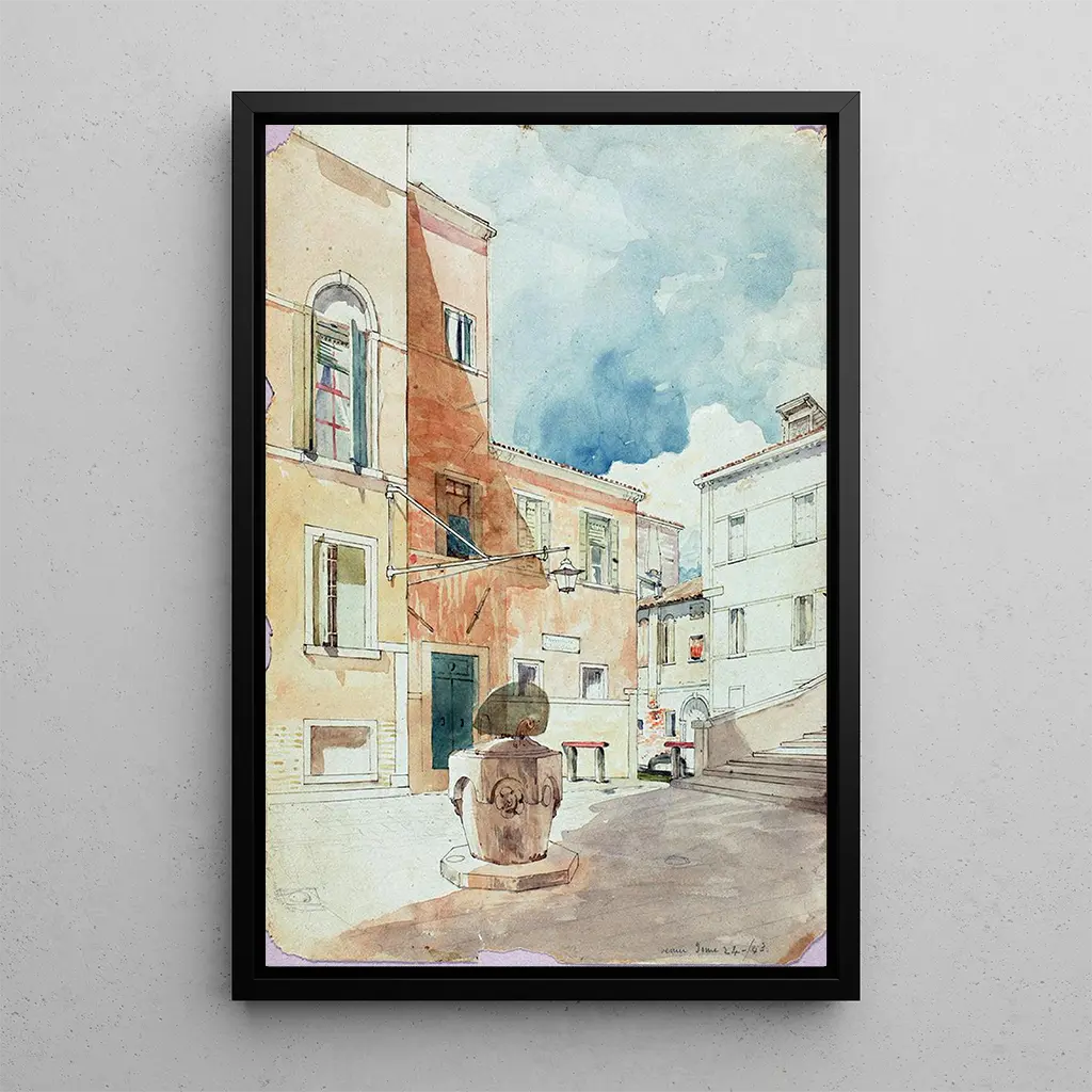 La impresión artística de Venise de Miner Kilbourne Kellogg evoca una atmósfera encantadora, donde los reflejos de los edificios en el agua crean una danza de colores. Los tonos suaves de azul y rosa se mezclan armoniosamente, mientras que los detalles arquitectónicos de los palacios venecianos emergen con delicadeza. La técnica de acuarela, utilizada por Kellogg, confiere a la obra una ligereza y una fluidez que recuerdan los movimientos de las góndolas deslizando sobre los canales. Este lienzo invita a una contemplación serena, transportando al espectador al corazón de la Serenísima, donde cada rincón parece contar una historia.