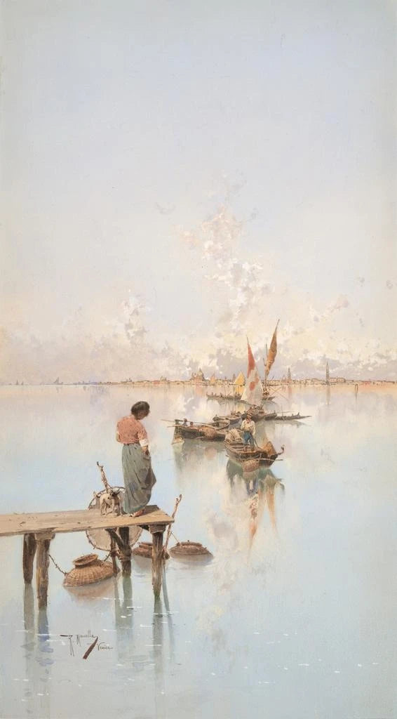 Venise : un cuadro de encanto y misterio La impresión artística de "Venise" evoca la magia y el romanticismo de esta ciudad emblemática. Los canales brillantes, las góndolas deslizando suavemente sobre el agua y la arquitectura veneciana se combinan en una composición vibrante. Los colores ricos y los reflejos luminosos crean una atmósfera cautivadora, transportando al espectador al corazón de esta ciudad de aguas. La técnica del artista, que juega con la luz y la sombra, da vida a cada detalle, haciendo de esta obra no solo una representación, sino una verdadera invitación a explorar las callejuelas y plazas de Venise. Raffaele Mainella : un artista en el corazón de Italia Raffaele Mainella, pintor del siglo XX, es conocido por sus paisajes urbanos y sus escenas de la vida cotidiana, con un énfasis particular en Venise. Su estilo, influenciado por el postimpresionismo, se caracteriza por pinceladas dinámicas y una paleta de colores vibrantes. Mainella supo capturar la esencia de Venise, una ciudad cargada de historia y cultura, destacando sus contrastes y su belleza atemporal. Su obra es un testimonio de la importancia de la ciudad en el arte italiano, y continúa inspirando a artistas contemporáneos. Una adquisición decorativa con múltiples ventajas La impresión artística de "Venise" es una pieza decorativa que aporta un toque de elegancia y misterio a cualquier interior. Ya sea en una sala de estar, una oficina o un dormitorio, esta obra atrae la mirada y despierta la curiosidad. Su calidad de impresión garantiza fidelidad en los colores y detalles de la obra original, haciendo de esta impresión artística una elección ideal para los amantes del arte. Al añadir esta obra a tu decoración, creas un espacio que evoca el encanto y la belleza de Venise, ofreciendo a la vez una atmósfera cálida y acogedora.