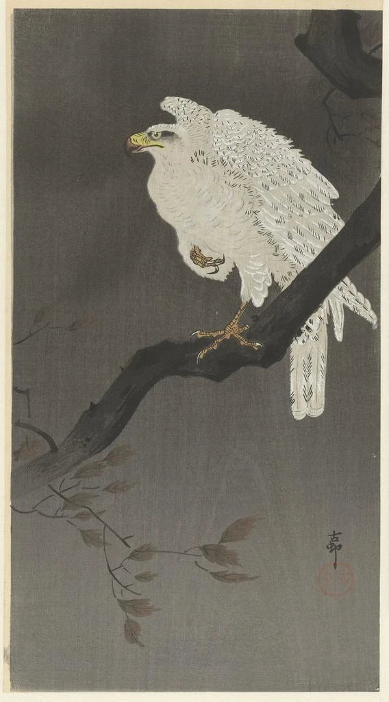 Impresión artística | Águila nevada sobre una rama de árbol - Ohara Koson