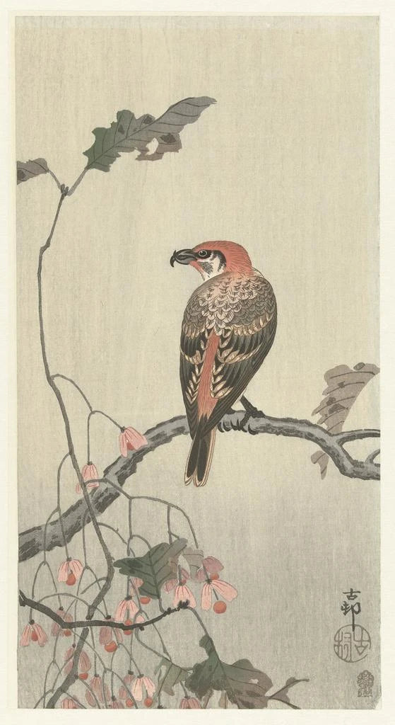 Ohara Koson, activo a principios del siglo XX, es reconocido como uno de los grandes maestros del ukiyo-e, un arte tradicional japonés. Influenciado por los paisajes y la fauna de su país, Koson supo combinar tradición y modernidad en sus obras. Sus representaciones de aves y flores son especialmente apreciadas, demostrando su habilidad para capturar la belleza fugaz de la naturaleza. En una época en que Japón se abría a Occidente, Koson desempeñó un papel clave en la preservación y reinvención de este arte, convirtiéndolo en una figura imprescindible en la historia del arte japonés.